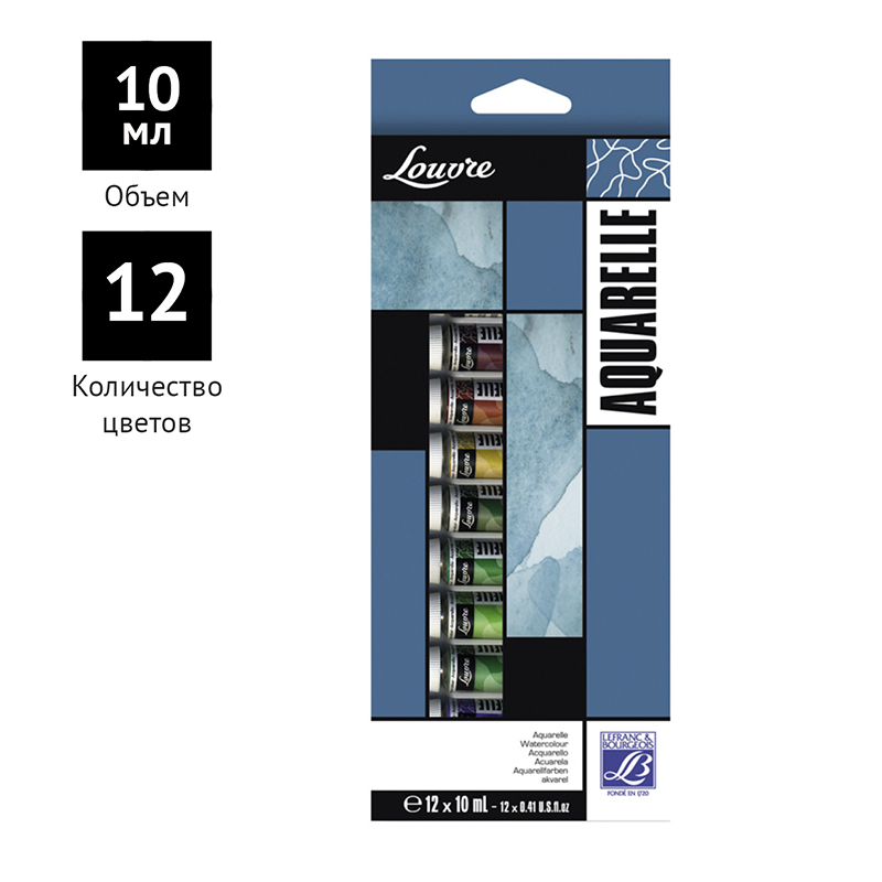 Акварель "Louvre" изготавливается из светостойких пигментов. Серия подойдёт для начинающих художников и учащихся художественных студий. Представлена в наборах различной комплектации. Яркие и светостойкие цвета. Акварель хорошо размывается и легко ложится на бумагу. Все цвета хорошо смешиваются между собой. В данный набор вошло 12 цветов в тубах по 10 миллилитров. Набор упакован в картонную коробку.