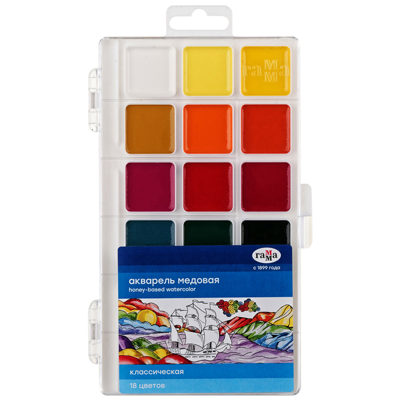 УЦЕНКА - Акварель Гамма "Классическая", медовая, 18 цветов, без кисти, пластик. упак., европодвес NEW