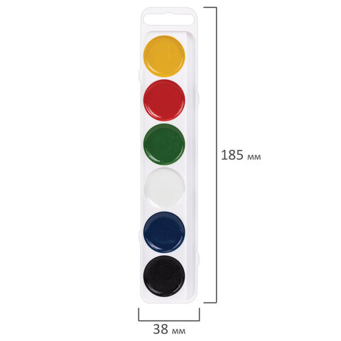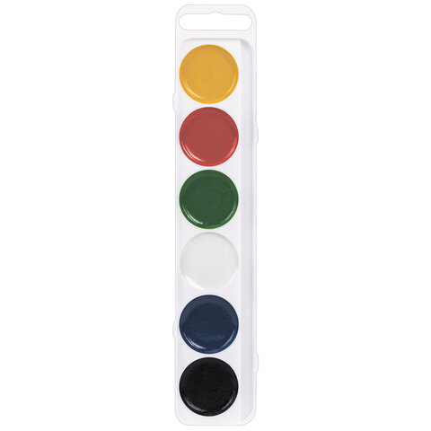 6 ярких насыщенных цветов отлично смешиваются между собой и позволяют создать множество оттенков, обеспечивают однородное окрашивание. Краски быстро высыхают и не портятся со временем. Безопасны для детей, нетоксичны. Выпускаются в картонной коробке с пластиковой подложкой, круглой формой кювет и отделением для кисточки. Упаковка обладает компактными размерами и легким весом.