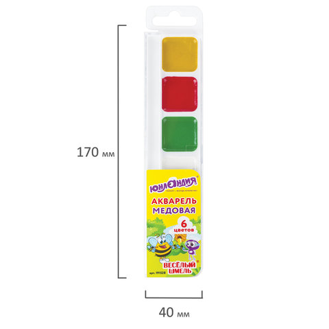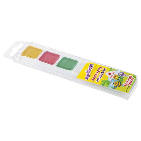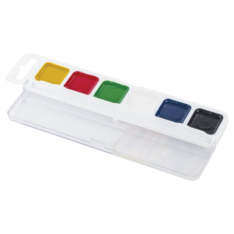 6 ярких насыщенных цветов отлично смешиваются между собой и позволяют создать множество оттенков, обеспечивают однородное окрашивание. Краски быстро высыхают и не портятся со временем. Безопасны для детей, нетоксичны. Выпускаются в пластиковом пенале с прозрачной крышкой, квадратной формой кювет и отделением для кисточки. Упаковка обладает компактными размерами и легким весом.