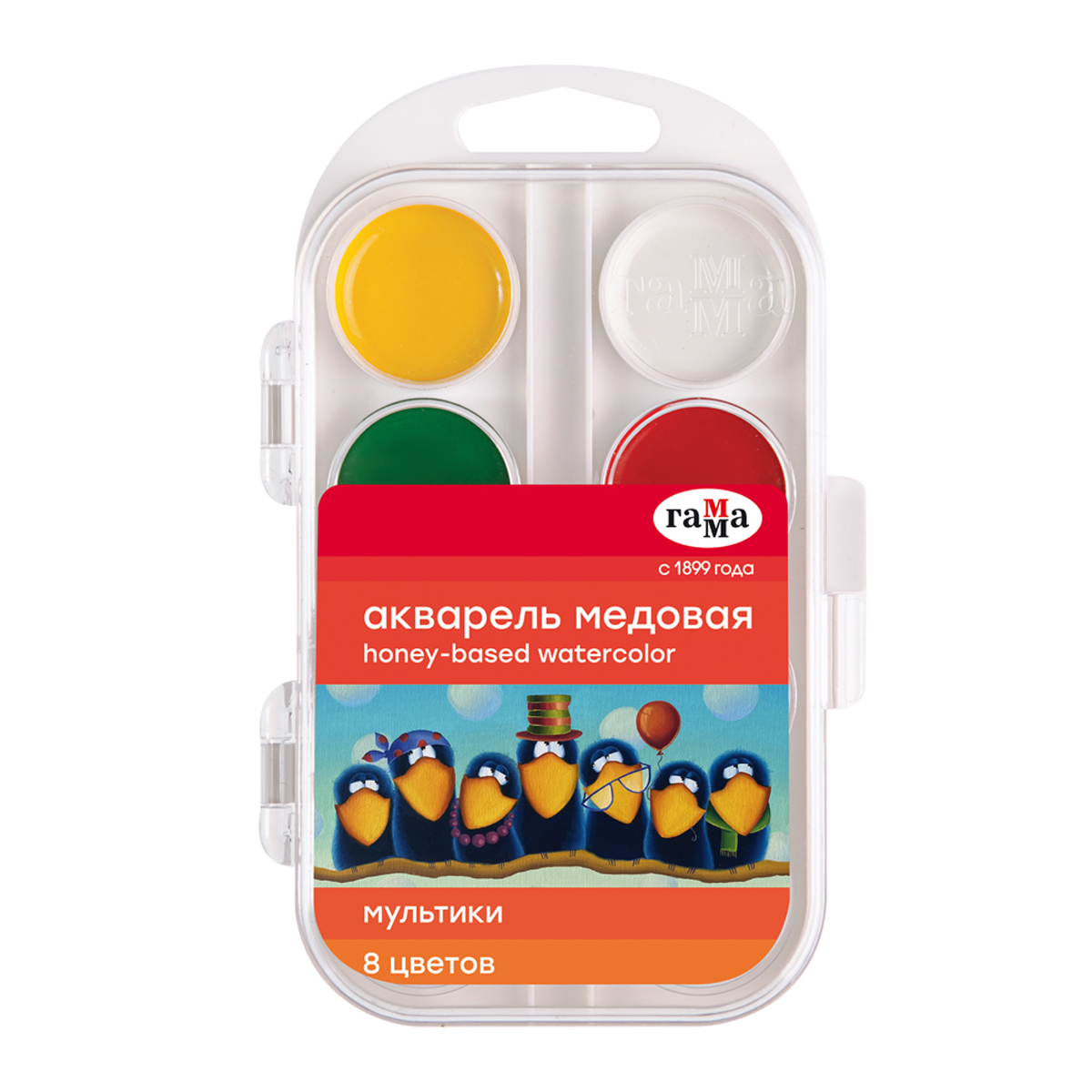 УЦЕНКА - Акварель Гамма "Мультики" NEW, медовая, 08 цветов, без кисти, пластик. упак., европодвес