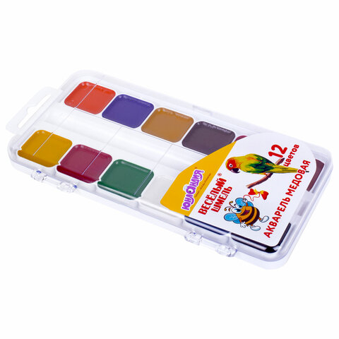 Краски акварельные BRAUBERG "МОНСТРИКИ", медовые, 12 цветов, круглые кюветы, 192641