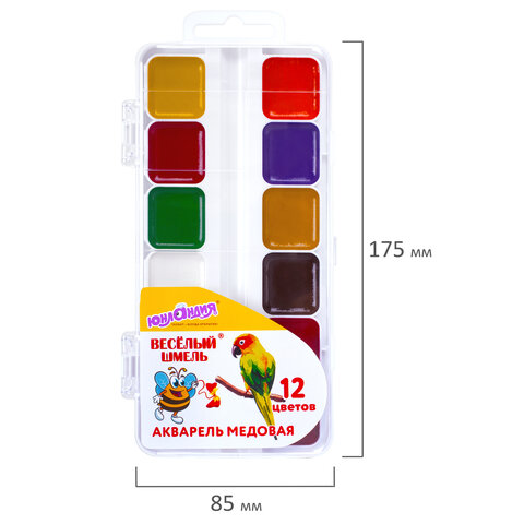 Краски акварельные ЮНЛАНДИЯ "ВЕСЁЛЫЙ ШМЕЛЬ", медовые, 10 цветов, КЛАССИЧЕСКИЕ, пластик, 191323
