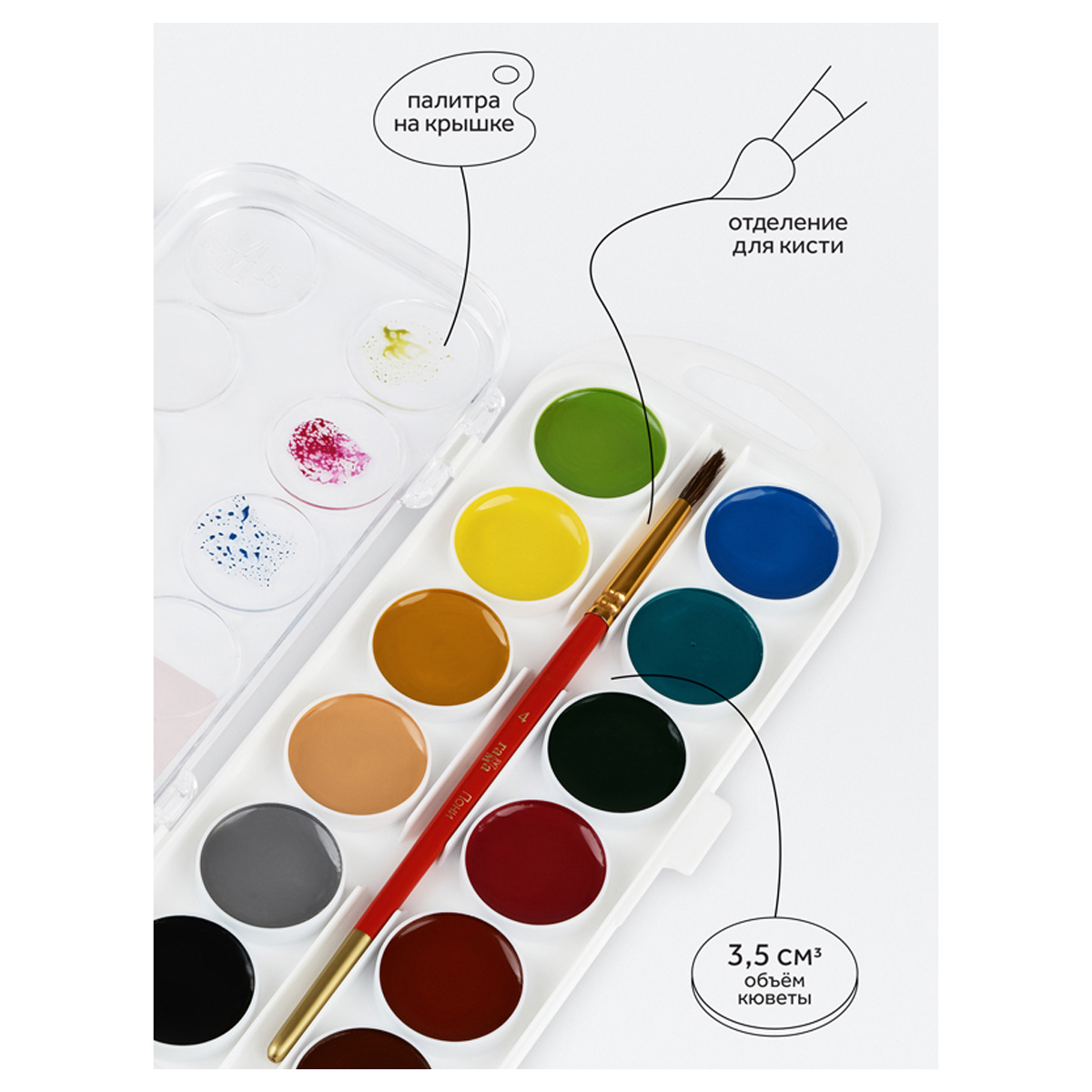 Краски акварельные ПИФАГОР СОЛНЫШКО 12 цветов, круглые кюветы, на коррексе, 192636