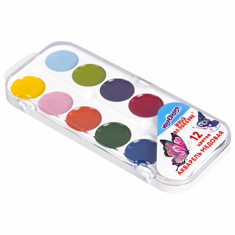 Краски акварельные ПИФАГОР СОЛНЫШКО 12 цветов, круглые кюветы, на коррексе, 192636