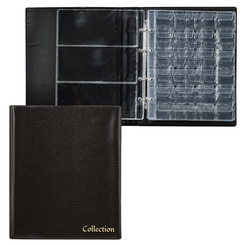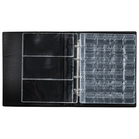 Альбом для монет OfficeSpace "Карта" формат Optima, 230*270, на кольцах, черный, 10л., иск. кожа