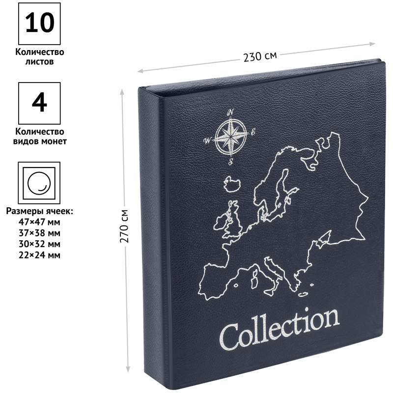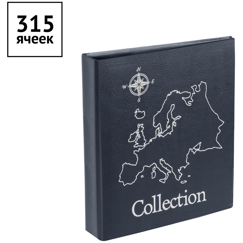Альбом для монет OfficeSpace "Карта" формат Optima, 230*270, на кольцах, черный, 10л., иск. кожа