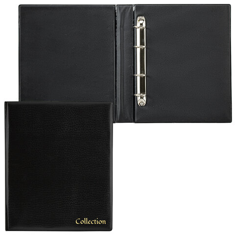 Альбом для монет OfficeSpace "Карта" формат Optima, 230*270, на кольцах, черный, 10л., иск. кожа