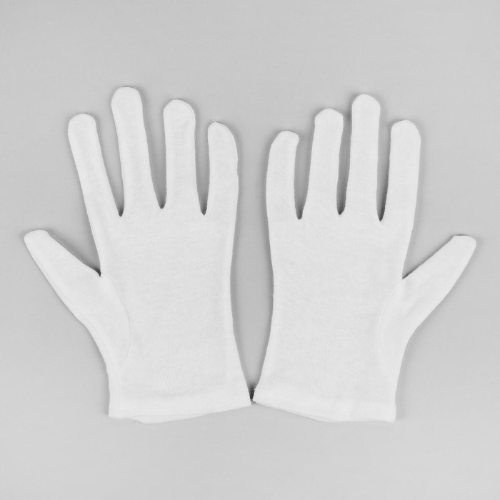 Перчатки хлопковые, размер M, пара, фасовка 12 шт, цвет белый
