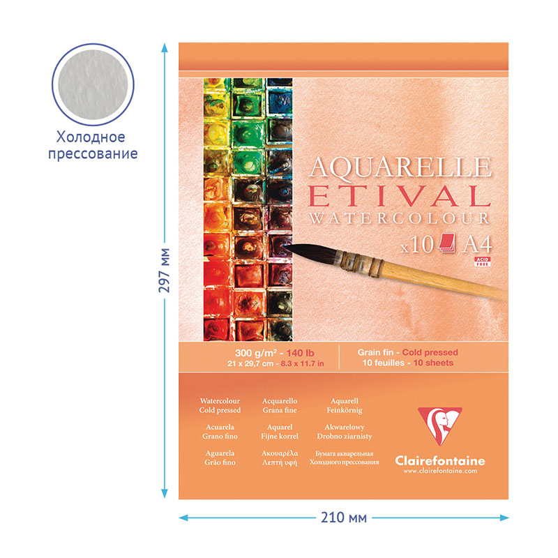 Альбом для акварели Clairefontaine «Etival» на склейке. Размер: 210*297 мм. Назначение: для акварели. Текстура внутреннего блока: зернистая. Материал обложки: картон. Бумага для акварели Etival – это выбор начинающих художников. Альбом всегда можно взять с собой, а склейка позволяет отделить лист с готовым рисунком.