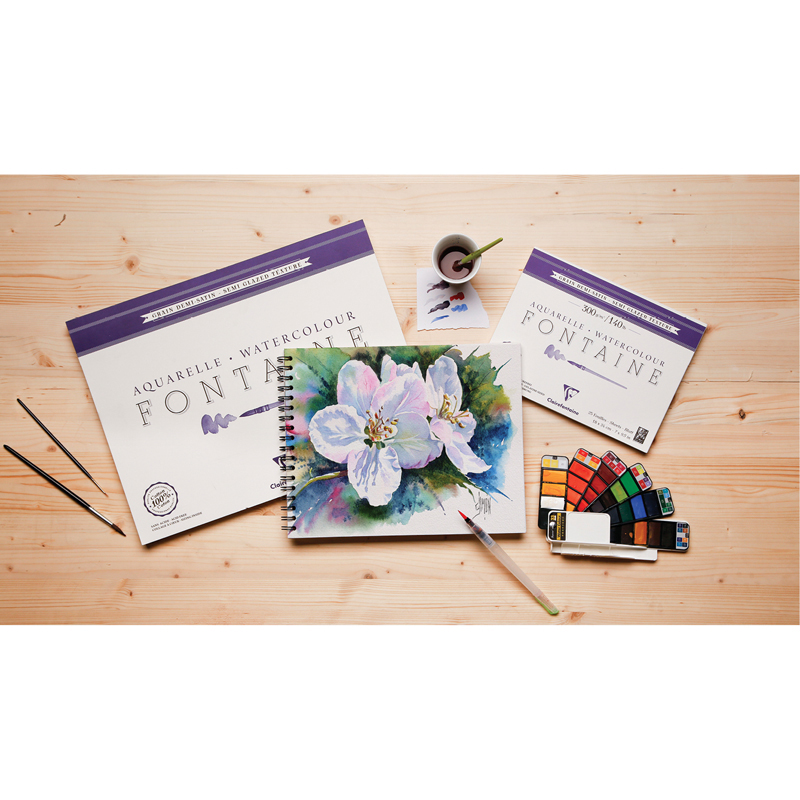 Бумага Clairefontaine линейки Fontaine серии Demi-satine – это бескислотная бумага из 100% хлопка, горячего прессования с почти гладкой поверхностью, но менее ровной, чем серия Grain satine. Размер: 300*400 мм. Она хорошо подходит для прорисовок мелких деталей, где явные очертания играют важную роль. Хлопковые волокна бумаги линейки Fontaine, полые, поэтому они способны впитывать воду, что особенно важно при работе акварелью. Эта бумага облегчает ретуширование и обладает прекрасной светопередачей.