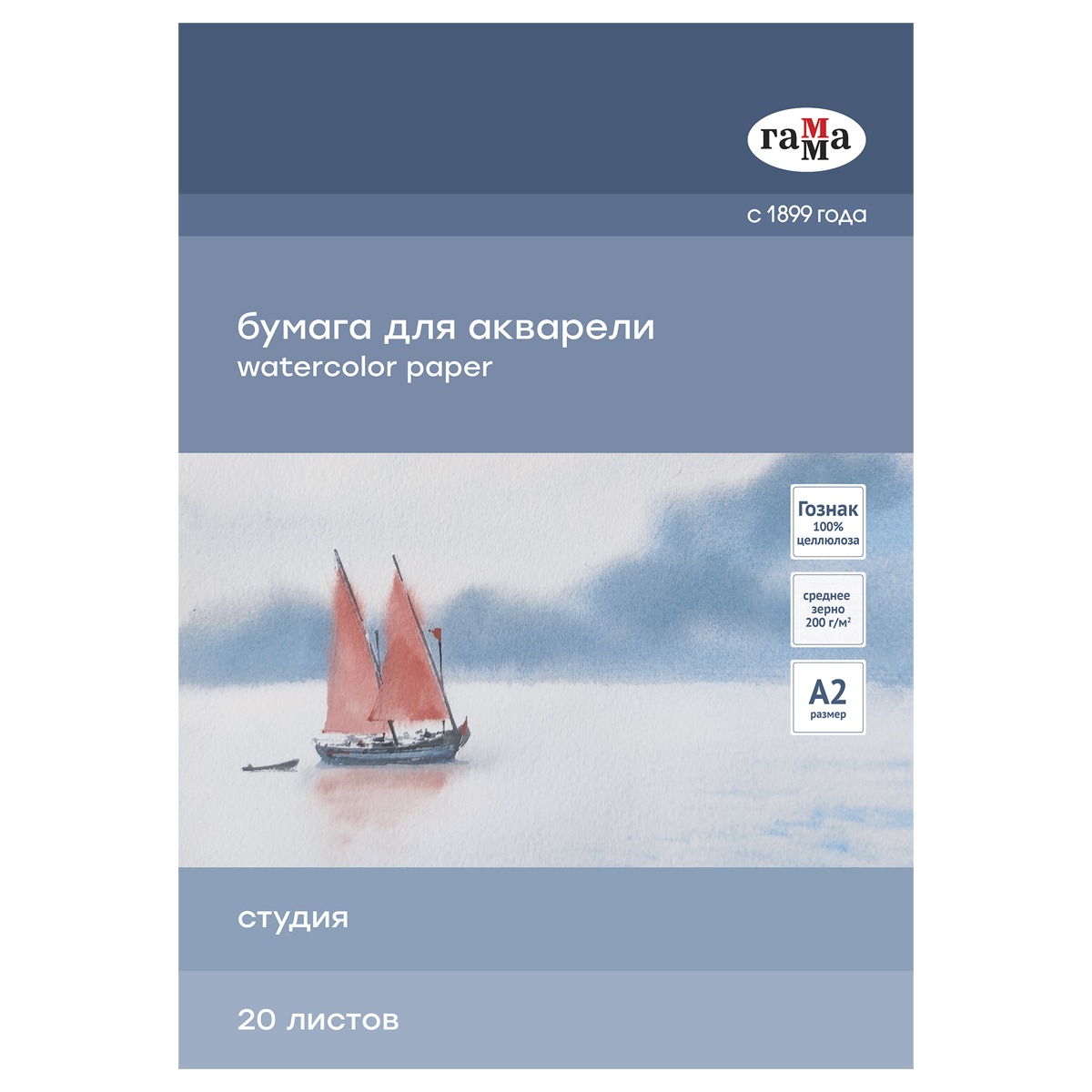 Папка для акварели 20л., А2, Гамма "Студия", 200г/м2, среднее зерно