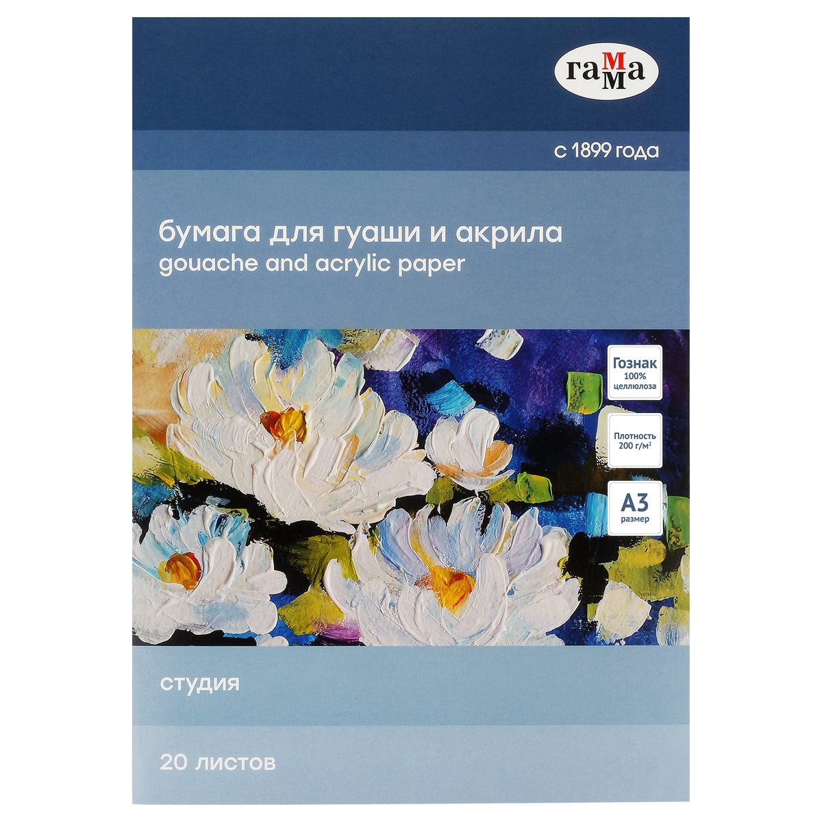 Папка для рисования гуашью и акрилом 20л., А3, Гамма "Студия", 200г/м2