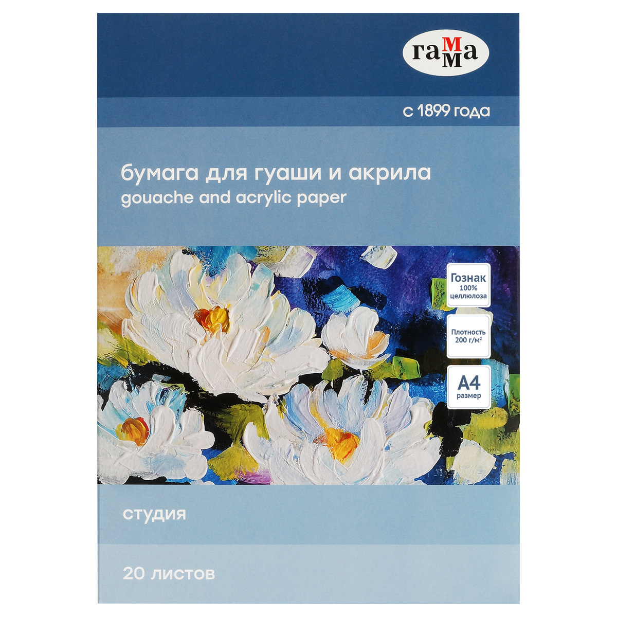 Папка для рисования гуашью и акрилом 20л., А4, Гамма "Студия", 200г/м2