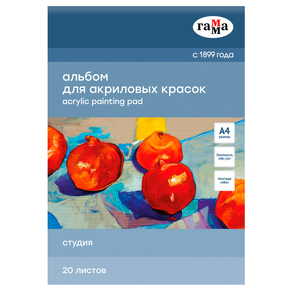 УЦЕНКА - Альбом для акрила, 20л., А4, на склейке Гамма "Студия", 190г/м2, текстура "лен"