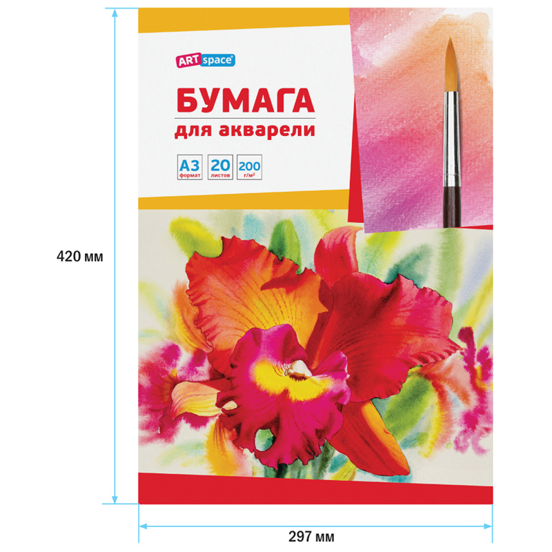 Папка для рисования акварелью ArtSpace из мелованного картона с внутренним блоком выполненном специальной рисовальной чистоцеллюлозной бумаги формата А3 размером 297*420 мм, плотностью 200 гр/м2. Количество листов в упаковке – 20 штук.