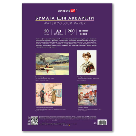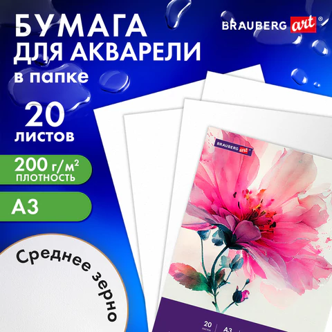Бумага для акварели BRAUBERG ART "CLASSIC" содержит набор листов, специально предназначенных для рисования всеми видами водорастворимых красок. Подходит как для профессионалов, так и для любителей.