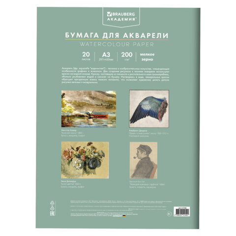 Папка для акварели BRAUBERG АКАДЕМИЯ предназначена для рисования всеми видами водорастворимых красок, а также подойдет для рисования карандашами, ручками и фломастерами. Бумага подходит для непрофессионального и детского рисования.