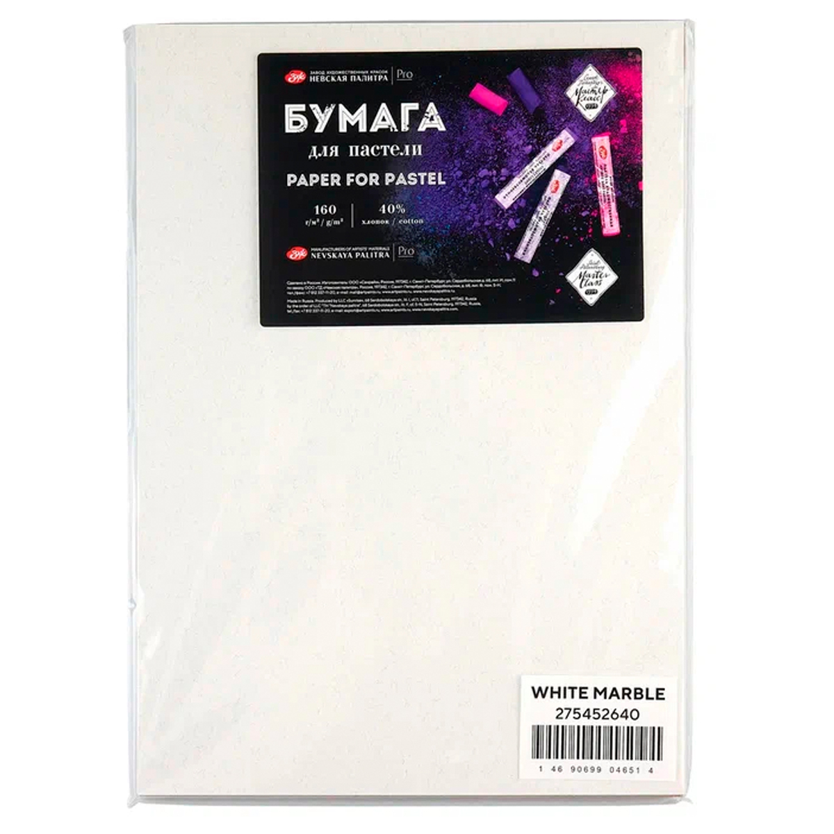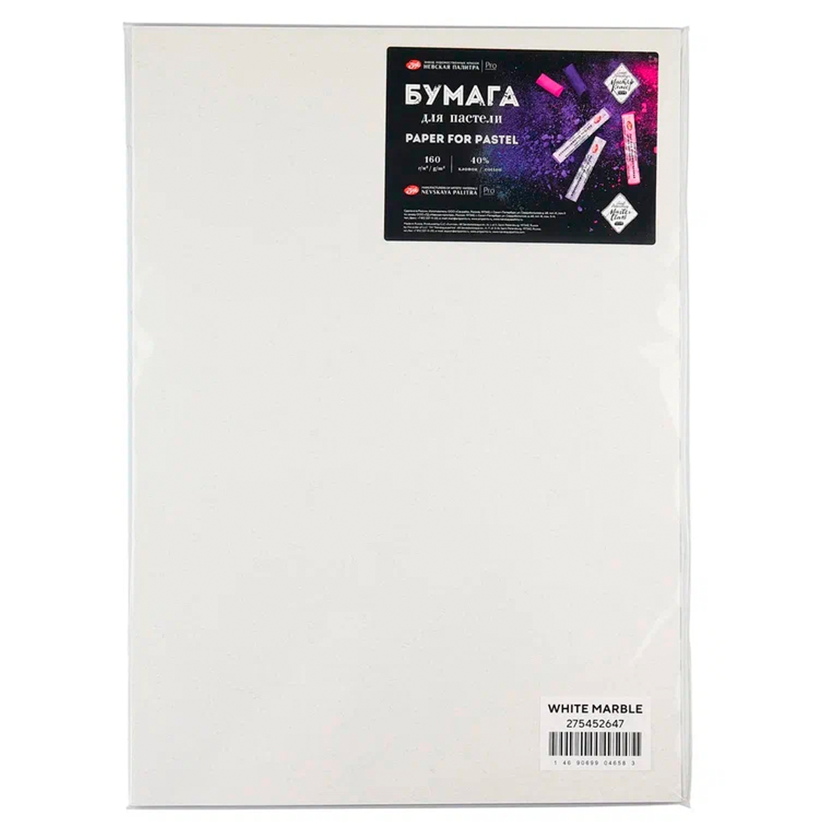 Бумага для пастели "Мастер-Класс", 160 г/м2, А3, 40% хлопок, 20 листов, белый мрамор