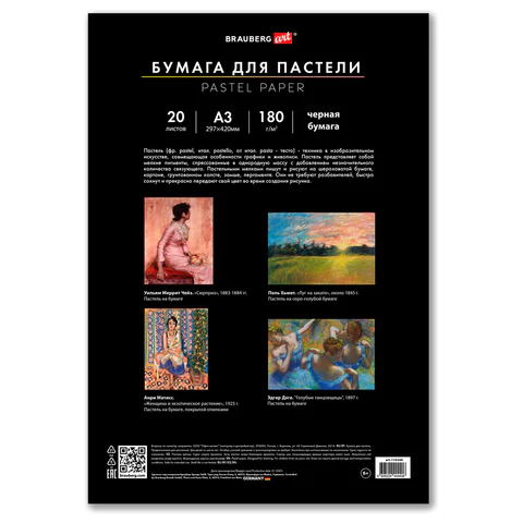 Бумага для пастели BRAUBERG предназначена для различных техник рисования. Позволяет создавать мягкие и детализированные текстуры на картинах, а при более плотной зарисовке пастель выглядит ярко и сочно.