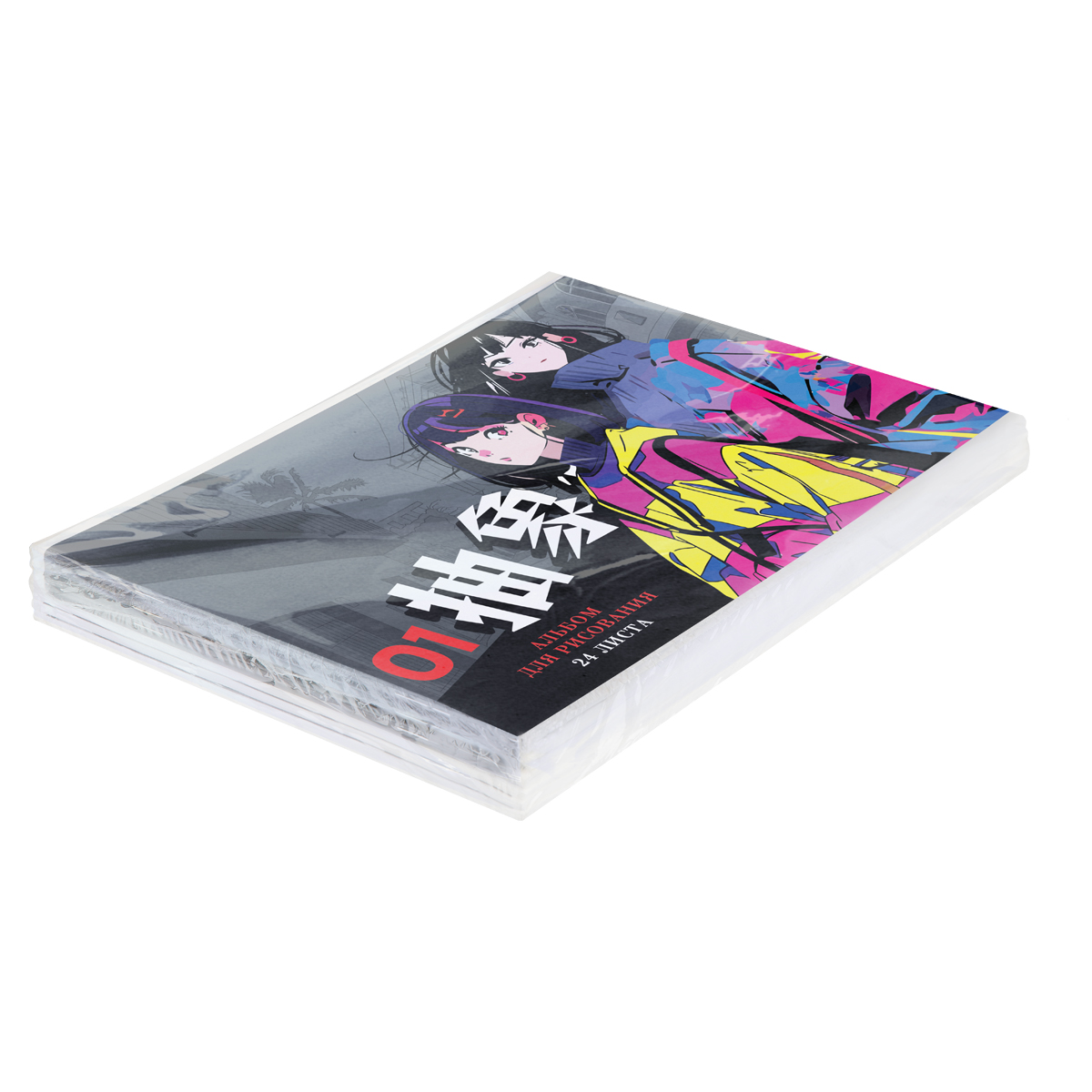 Альбом "Anime" подходит для рисования различными типами красок, фломастерами, цветными и чернографитными карандашами, гелевыми ручками. Формат — А4. Альбом состоит из 24 листов офсетной бумаги 100% белизны. Обложка сделана из высококачественного мелованного картона. Листы скреплены скрепкой. Плотность внутреннего блока составляет 100 г/м2.