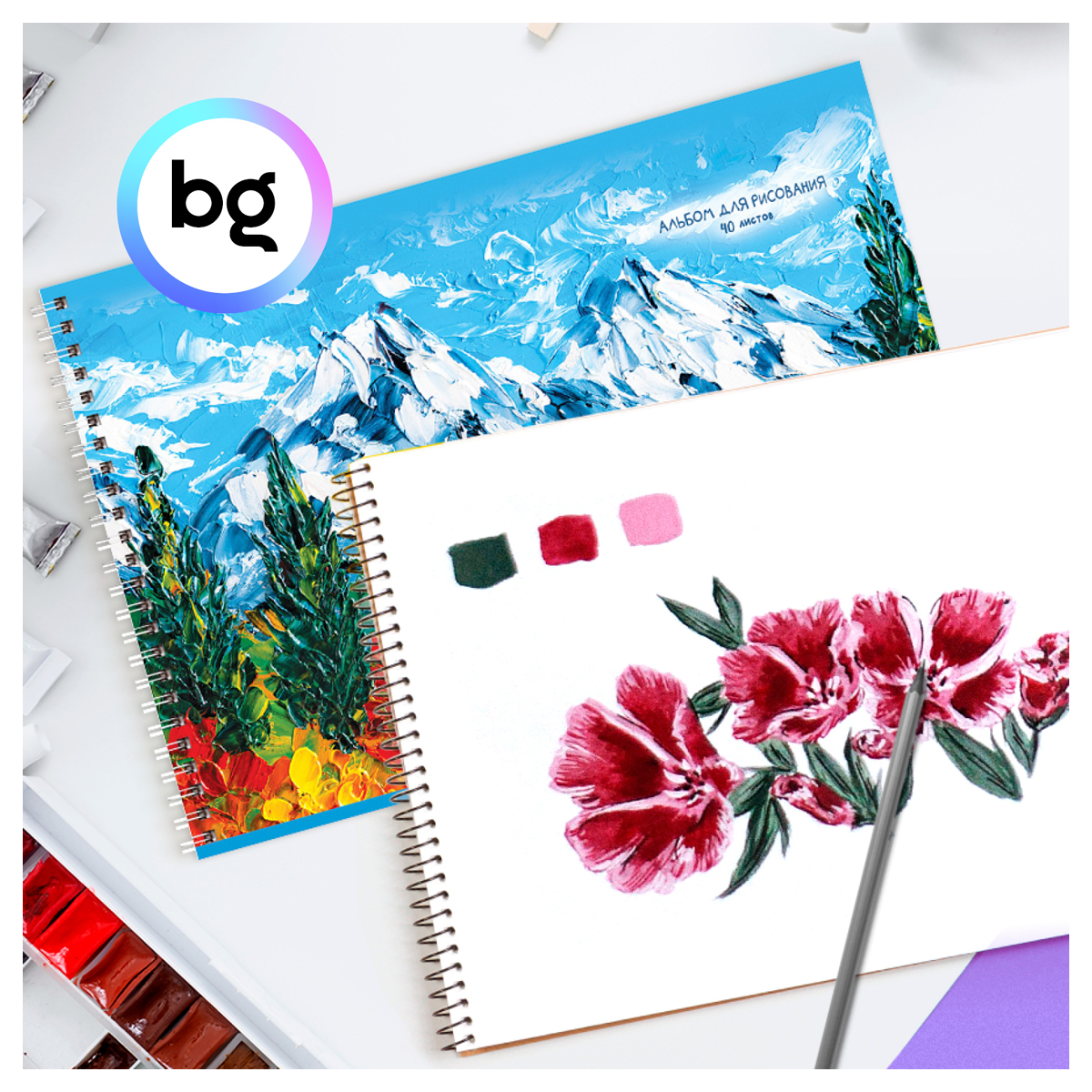 Альбом для рисования BG предназначен для детей дошкольного и школьного возраста, а также для тех, кто увлекается живописью. Обложка выполнена из мелованного картона. Количество листов: 40. Внутренняя бумага плотностью 100 г/м2, белизной 100%. Формат А4. Тип скрепления: гребень. Альбом подходит для рисования карандашами, фломастерами, красками. В упаковке 2 дизайна.