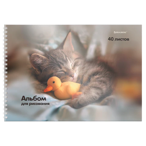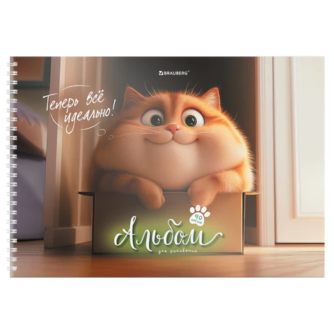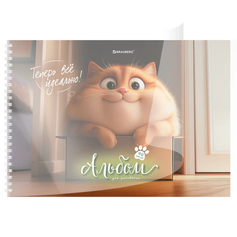 Альбом д/рис. А4 40л., гребень, обложка картон, BRAUBERG, 205х290мм, кросс-серия "КОШАЧЬИ ЛАПКИ", 107520