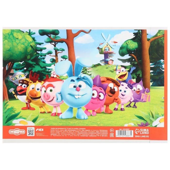 Альбом для рисования на гребне, А4, 32 листа, Смешарики