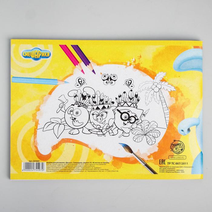 Альбом для рисования на гребне, А4, 32 листа, Смешарики