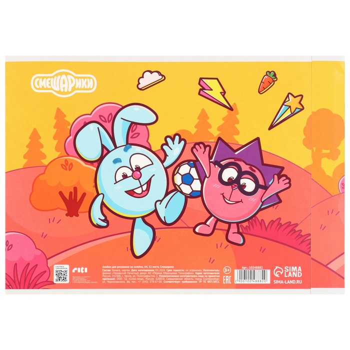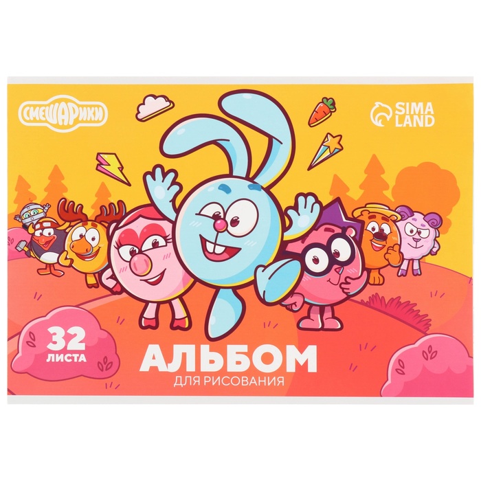 Альбом для рисования на гребне, А4, 32 листа, Смешарики