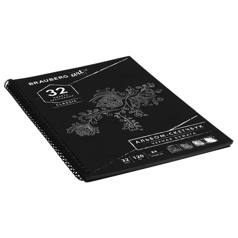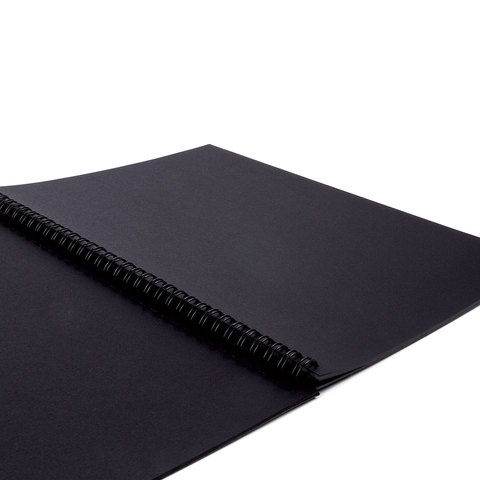 Привлекательная обложка выполнена из импортного мелованного картона. В блокноте 32 листа бумаги черного цвета плотностью 120 г/м2, т.е. 32 возможности воплотить свою задумку! Листы удобно скреплены спиралью - это позволяет переворачивать их на 360 градусов. Задняя подложка жесткая, что позволит делать зарисовки и наброски на весу. Удобный формат размером 210х297 мм.