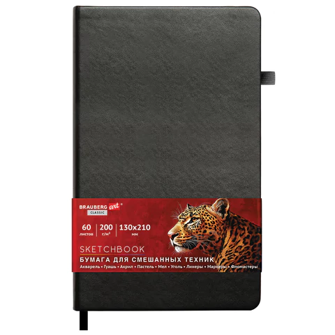 Скетчбук BRAUBERG ART "CLASSIC" для смешанных техник. Внутренний блок - специальная художественная бумага белого цвета. Подходит для работы с широким спектром графических материалов (акварель, гуашь, акрил, маркеры, фломастеры и прочие).