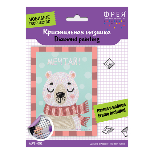 Мозаика алмазная " Фрея " 19,5*14см Мечтатель, с частичным заполнением, цветная схема на картонной основе, стилус, стразы, лоток, инструкция, рамка