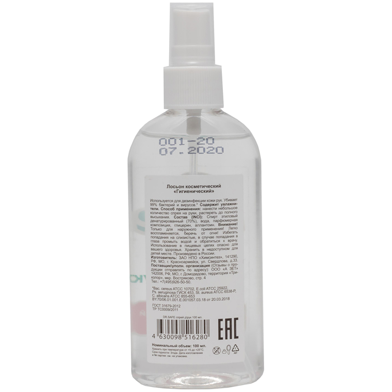 Антисептик на основе спирта, подходит как для обработки рук, так и для дезинфекции поверхностей. Новый удобный формат флакона 100 мл, легкое и быстрое нанесение на кожу (распылитель). Подходит для частого использования, не сушит кожу. 99,9% эффективности против бактерий и вирусов.<br/>Состав: 70% спирт этанол, увлажнители кожи.