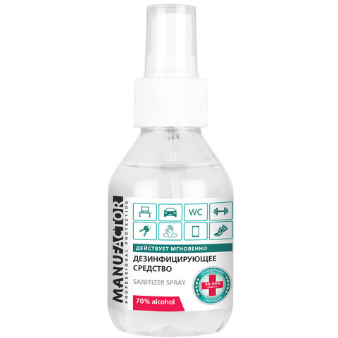 Антисептик для рук и поверхностей спиртосодержащий (70%) с распылителем 100 мл MANUFACTOR, дезинфицирующий, жидкость, N30913