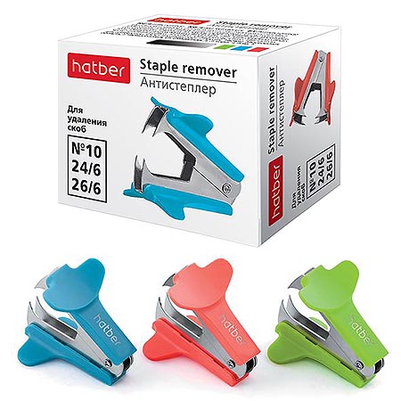 Антистеплер " Hatber " для скоб №10, 24/6, 26/6, ассорти Неон (без возможности выбора цвета)