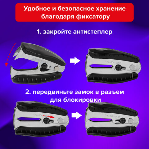Антистеплер Berlingo "Blitz", с фиксатором, черный