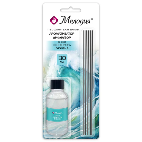 Ароматизатор диффузор с палочками 30мл МЕЛОДИЯ "Свежесть океана", 609790