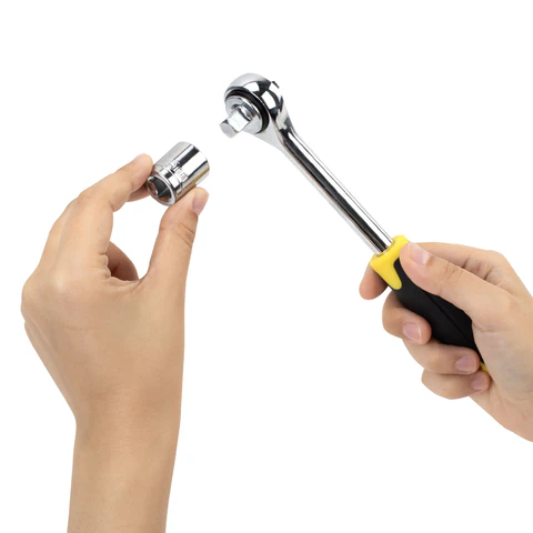 Реверсивная трещотка, удлинители и адаптеры обеспечивают доступ к креплениям и узлам даже в труднодоступных местах.