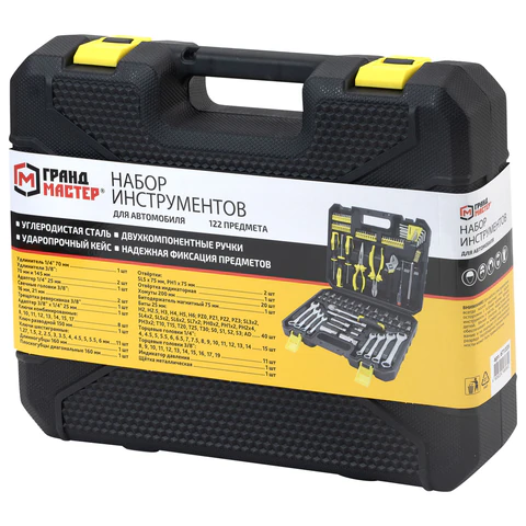 Набор инструментов ГРАНДМАСТЕР — это универсальный комплект, незаменимый как при обслуживании автомобиля, так и в быту. Его состав позволяет решать задачи разной сложности: от мелкого ремонта до профессионального монтажа.