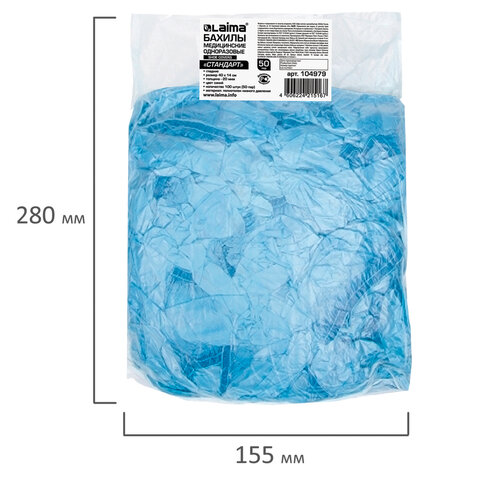 Бахилы – стандартный атрибут любого медицинского и фармацевтического учреждения, косметологических кабинетов, пищевых предприятий, особо чистых производств, лабораторий и других помещений. Среди многообразия современных моделей наибольшей популярностью пользуются тонкие бахилы. Они, как и особо прочные бахилы, плотно сидят на обуви и препятствуют распространению уличной пыли в заведениях. Бахилы класса «Стандарт» производятся из гладкой полиэтиленовой пленки низкого давления. Эти бахилы обладают хорошими показателями плотности (22 мкм) и весом 2,8 г, надежностью и низкой стоимостью. Бахилы из полиэтилена изготавливаются в синем цвете и универсальном размере 40х14 см. Поставляются в комплекте по 100 штук (50 пар).