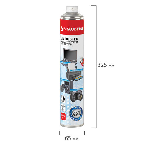 Баллон со сжатым воздухом BRAUBERG предназначен для бесконтактного удаления пыли и мелкого мусора из труднодоступных мест и внутреннего пространства компьютерной техники, аудио-, видео- и фотоаппаратуры, офисной и бытовой техники.