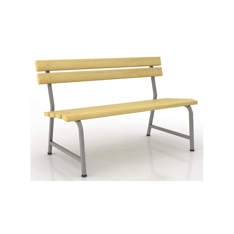 Скамья со спинкой деревянная на металлокаркасе "СТ 5", 1500х350х860 мм, регулируемые опоры, каркас металлический серый, сиденье дерево