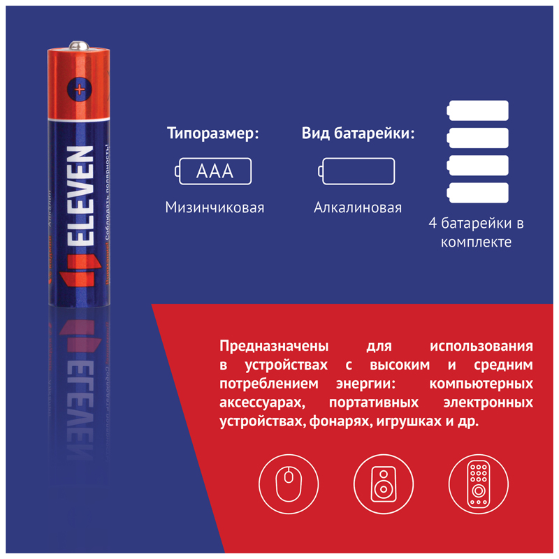 Алкалиновые батарейки предназначены для использования в устройствах с высоким и средним потреблением энергии: компьютерных аксессуарах, портативных электронных устройствах, фонарях, игрушках и др.