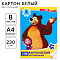 Картон белый мелованный односторонний А4, 8 листов 230г/м² в папке