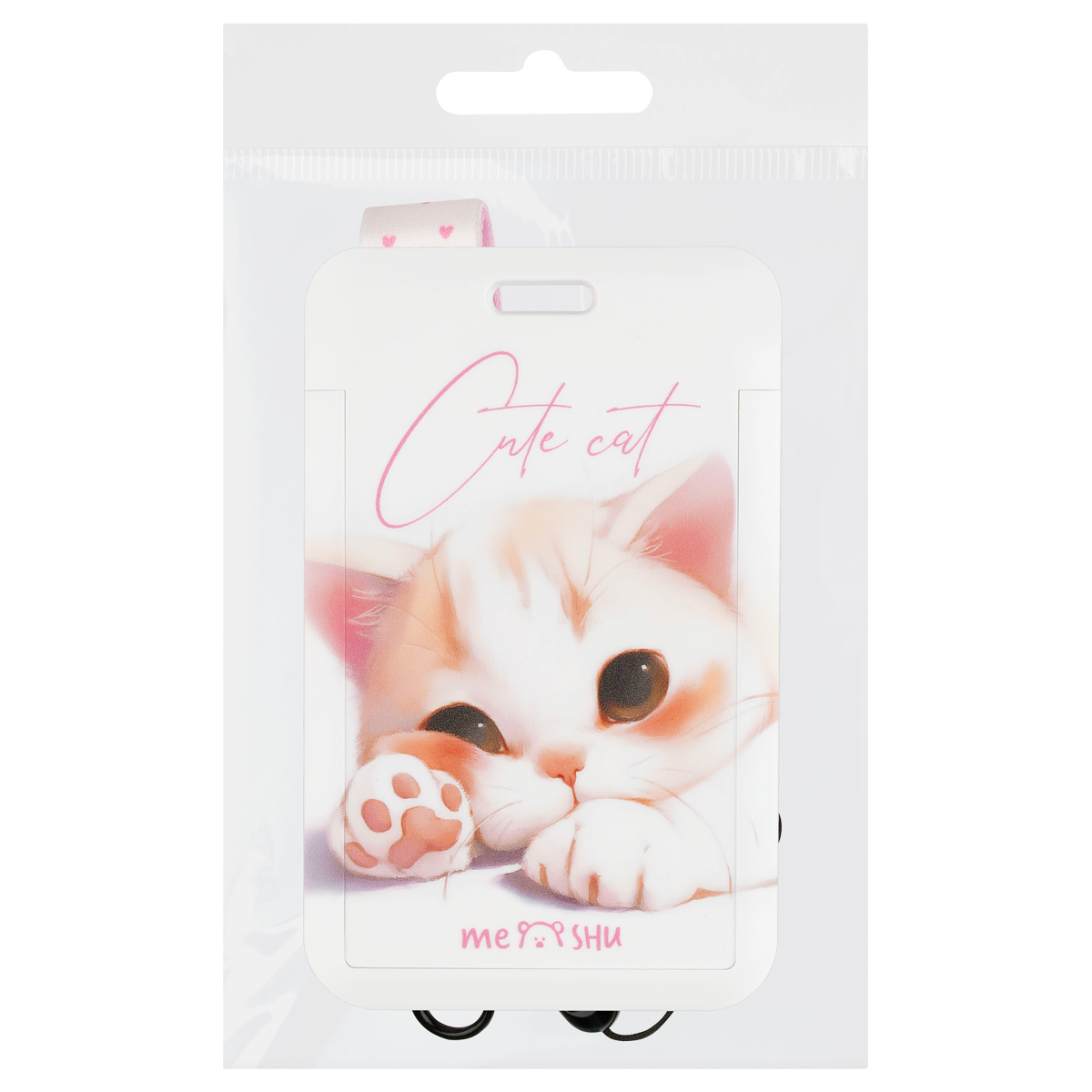 Вертикальный бейдж MESHU "Cute Cat" поможет не потерять пропуск и защитить его от механических повреждений. Чехол сделан из ударопрочного пластика. Изделие также подходит для проездных, визиток, именных карточек. Размер — 110*70 мм. Бейдж с милым котиком поднимет настроение на работе и учёбе. В комплект входит атласная лента с карабином, благодаря чему можно носить пропуск на шее. Бейдж упакован в ОПП пакет. <br/> • Размер: 110*70 мм;<br/> • Вид держателя: лента с карабином;<br/> • Упаковка: ОПП пакет.