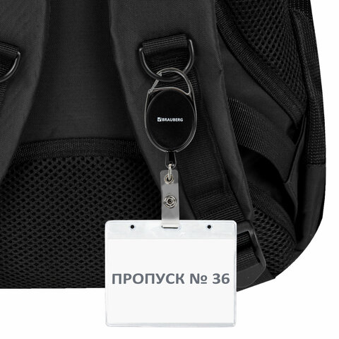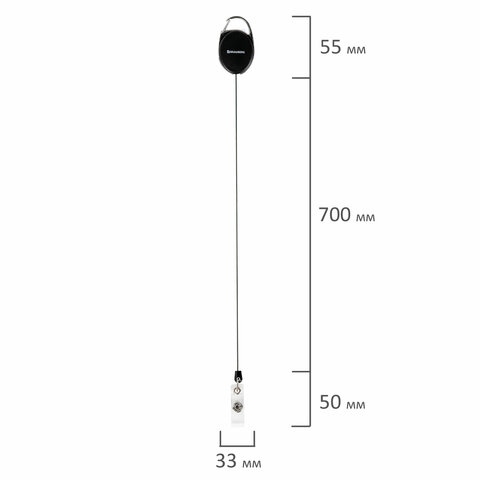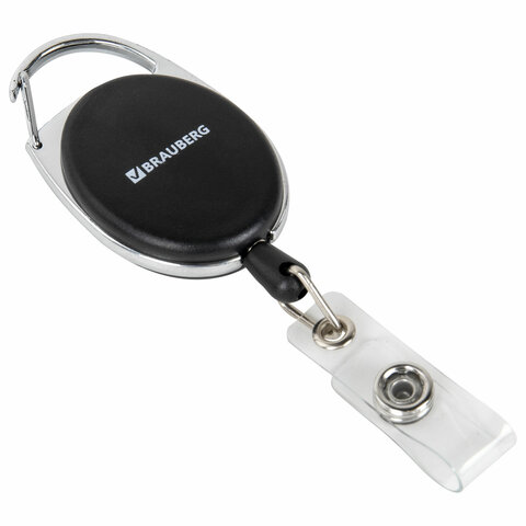 Держатель-рулетка для бейджей 70 см, с лентой 45 см, черный, BRAUBERG EXTRA, 238838