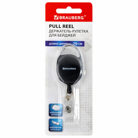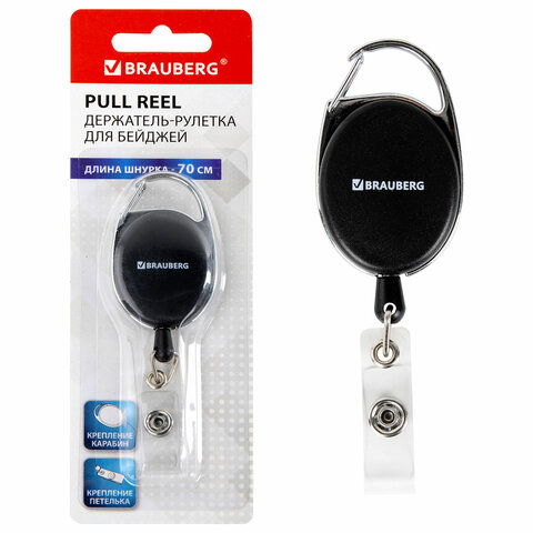 Держатель-рулетка BRAUBERG предназначен для крепления бейджей, магнитных карт, пропусков, ключей и мелкого инструмента.