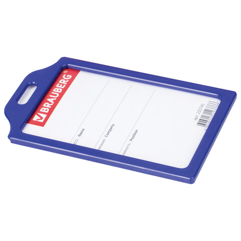 Бейдж вертикальный жесткокаркасный (85х55 мм), без держателя, СИНИЙ, BRAUBERG, 235745