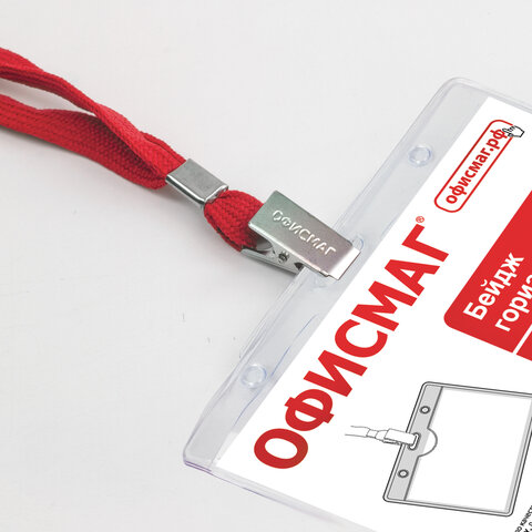 Горизонтальный бейдж ОФИСМАГ используется для идентификации сотрудников в компаниях, а также на семинарах, тренингах, презентациях и других мероприятиях.